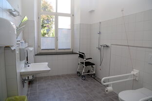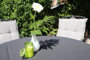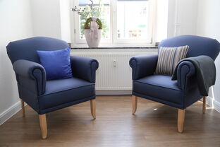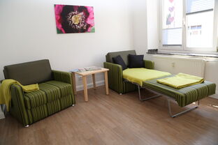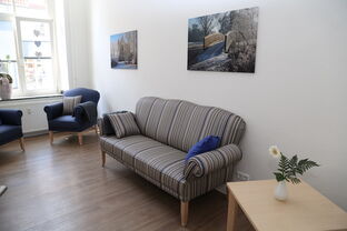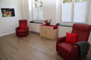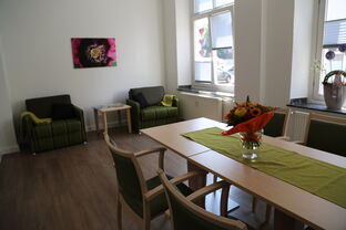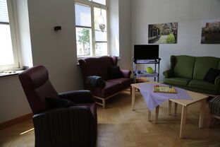 In unserem Gebäude verbindet sich der Charme eines historischen Gebäudes mit modernster Ausstattung. Unseren Tagesgästen stehen ein schönes großes Wohnzimmer mit antikem Kamin, drei liebevoll eingerichtete Salons, eine moderne Einbauküche, ein barrierefreies Badezimmer und ein Gäste-WC sowie eine gemütliche Terrasse für schöne Tage zur Verfügung.